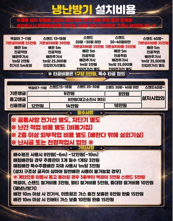 냉난방기 설치비용